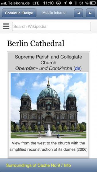 Sie möchten auch Informationen über die Stadt bekommen? Für internationale oder ortsfremde Teams kann es interessant sein, Hintergrundinformationen zu Orten zu erhalten, die in der iRallye vorkommen. Wir können die iRallye-App so programmieren, dass nach jeder gelösten Aufgabe an einem interessanten Ort relevante Informationen über diesen automatisch anzeigt werden.